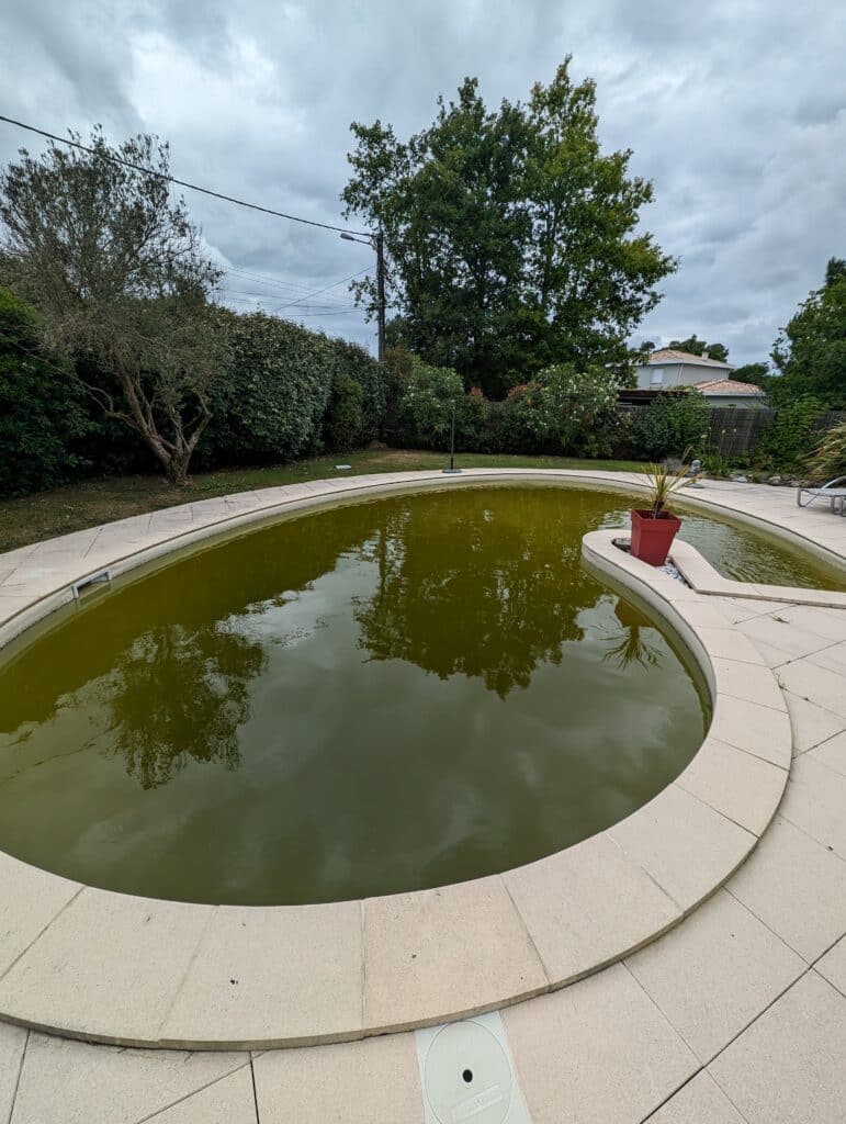 Lorsque l’eau d’une piscine vire au vert, c’est souvent le signe d’un déséquilibre de l’eau ou d’un manque d’entretien. À Biganos et dans tout le Bassin d’Arcachon, NICO PISCINES accompagne ses clients pour retrouver une eau limpide rapidement, puis assurer un entretien régulier tout au long de la saison. Grâce à des produits professionnels de haute qualité et un véritable savoir-faire, nous transformons des bassins totalement envahis d’algues en piscines parfaitement saines et prêtes à la baignade.